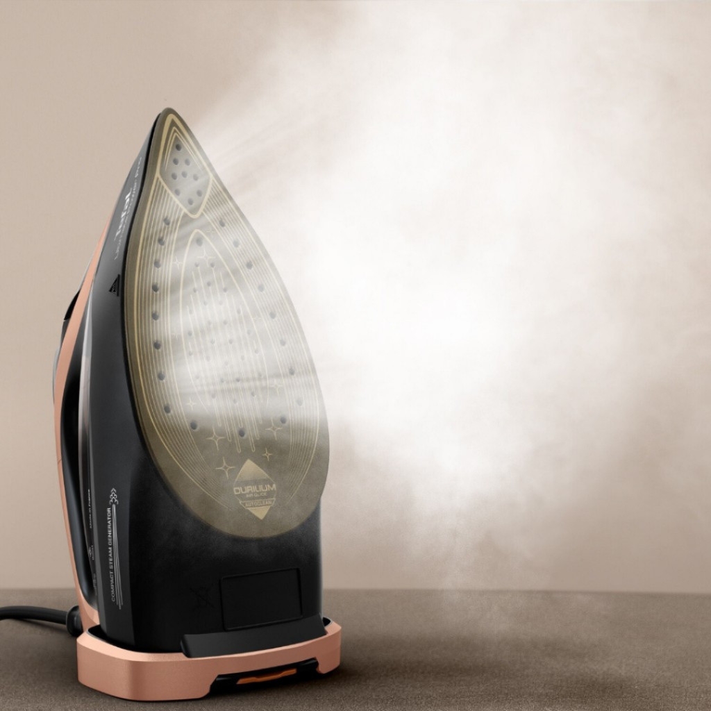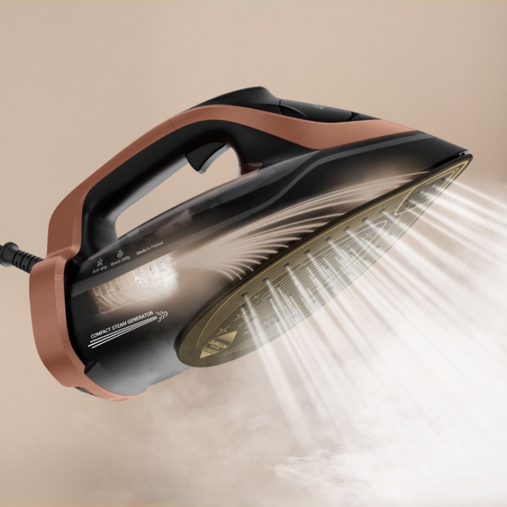 - Mặt đế bàn ủi có thiết kế hình chữ U hiện đại, hơi nước phân tán đồng đều theo nhiều hướng. Nhờ đó, quá trình ủi trở nên nhanh hơn, các nếp nhăn được làm phẳng hiệu quả hơn.
