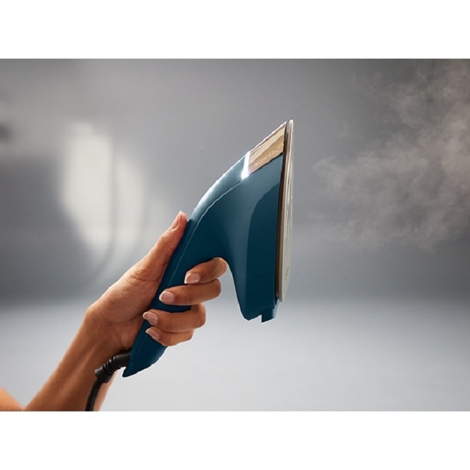 Bàn ủi hơi nước Tefal với thiết kế màu xanh tinh tế, nhỏ gọn.