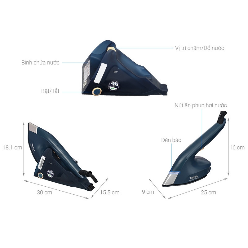 Chức năng: Ủi khô /Phun hơi liên tục /Phun hơi/ Ủi hơi nước/ Phun hơi tăng cường/ Phun hơi thẳng đứng/ Ủi nằm
