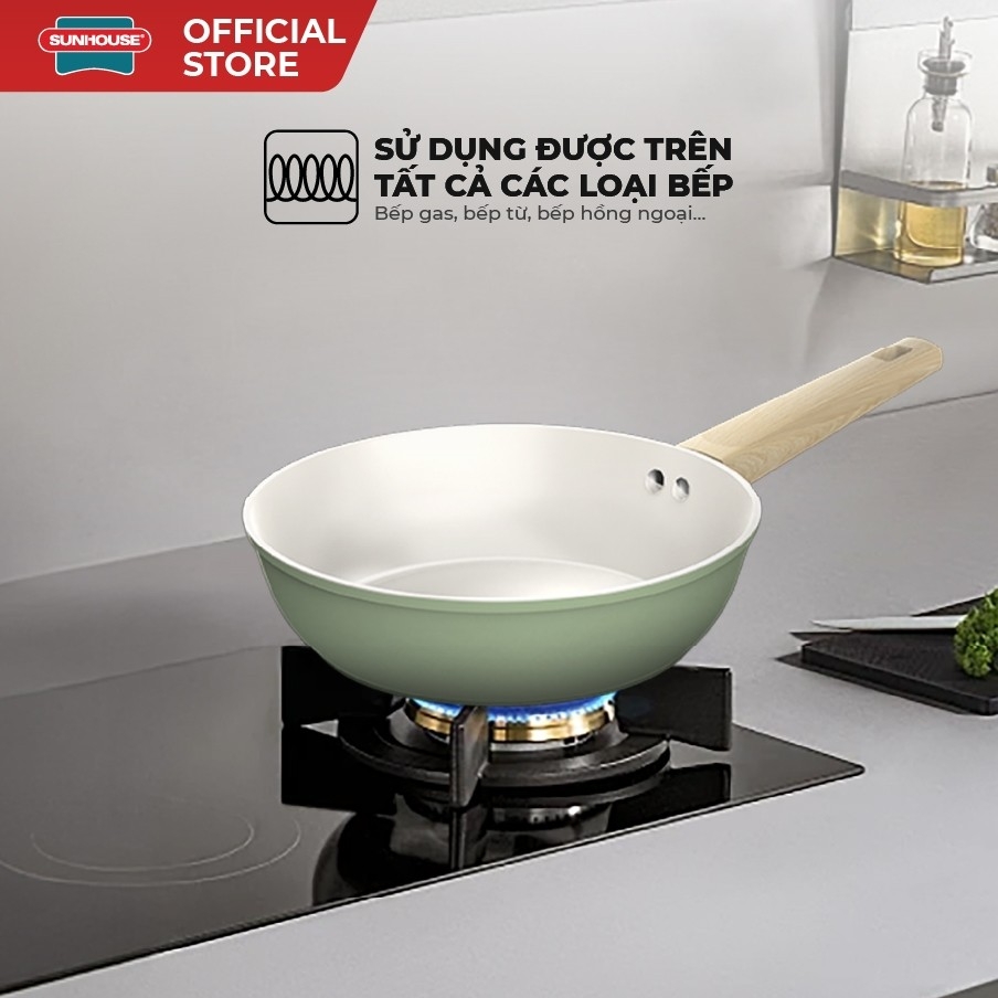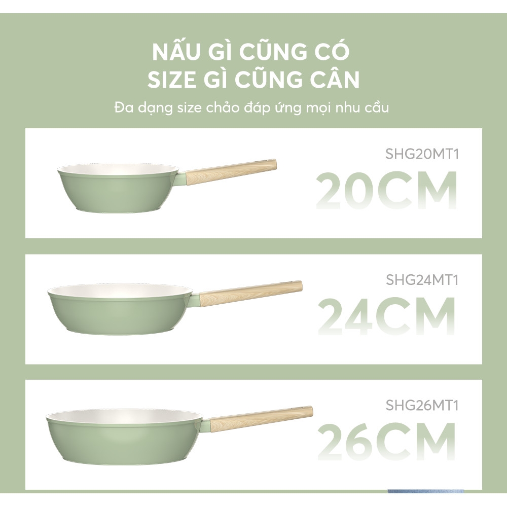 Chảo phủ sứ Nano đáy từ Sunhouse Healthy SHG20-24-26MT1 - Chống dính Nano Ceramic - Bắt từ nhanh - Màu sắc trendy - HAPOS HEL
