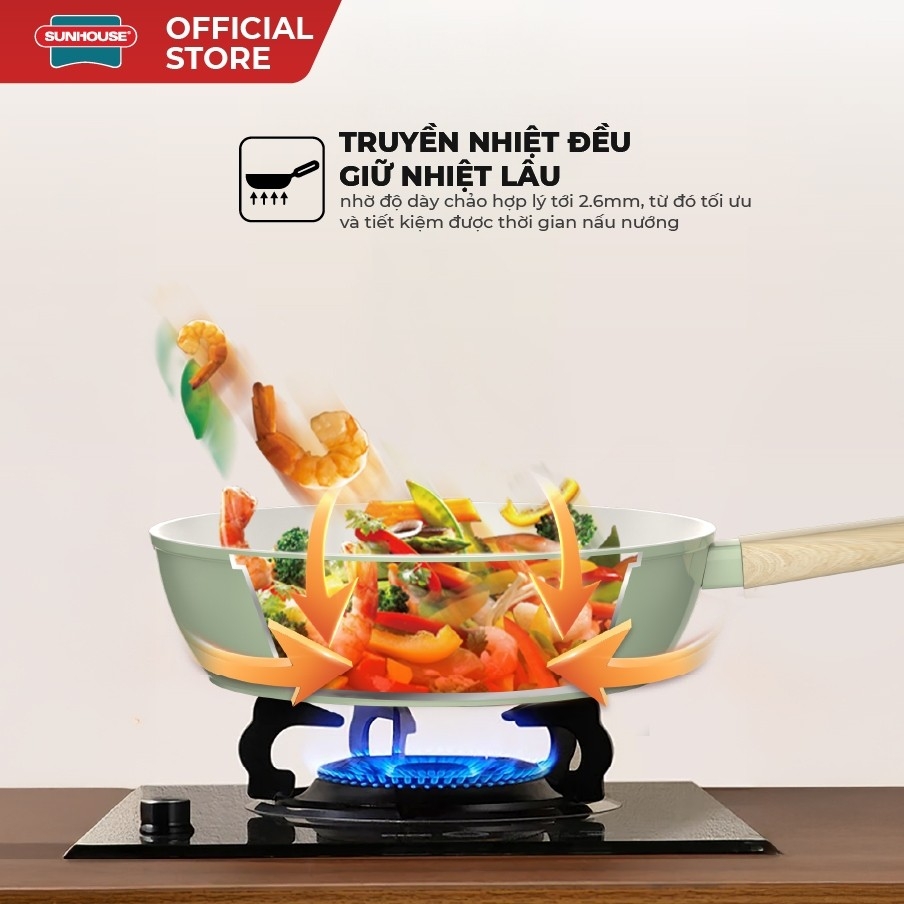 Chảo phủ sứ Nano đáy từ Sunhouse Healthy SHG20-24-26MT1 - Chống dính Nano Ceramic - Bắt từ nhanh - HAPOS HEL SHG26MT1 - Size 26cm