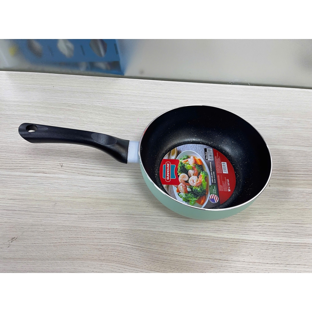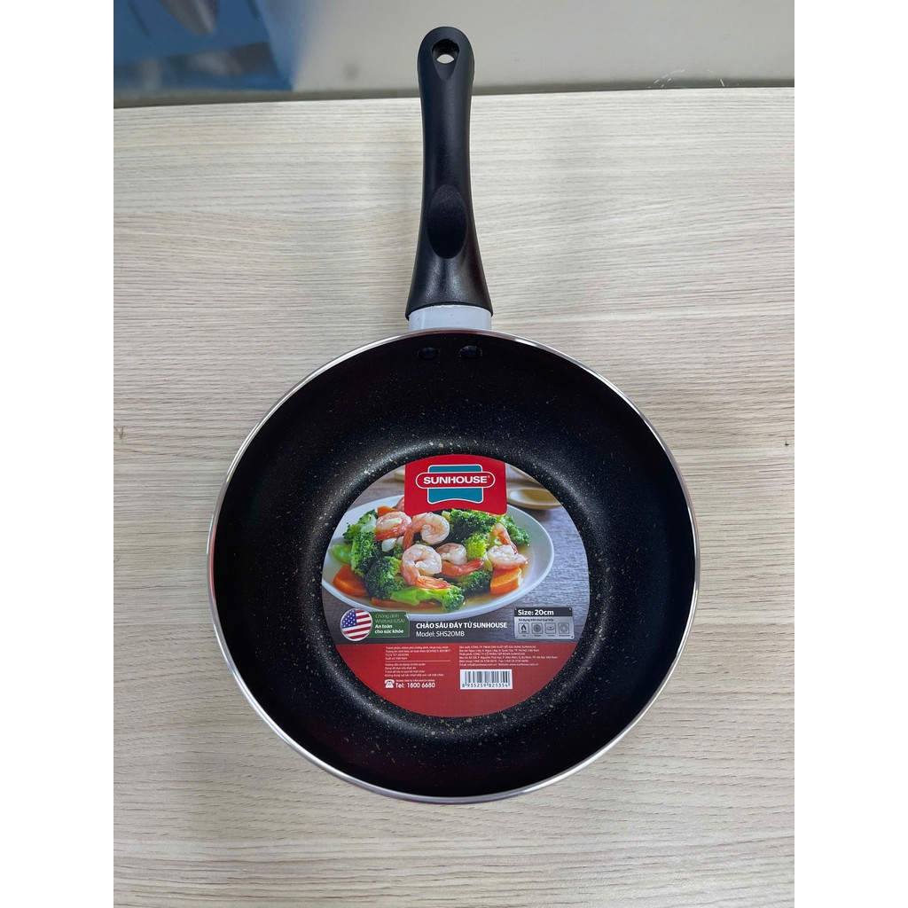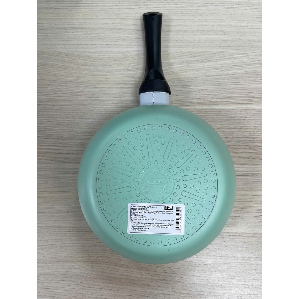 Đặc điểm nổi bậtChống dính Whitford (USA) an toàn cho sức khỏeChất liệu nhôm tấm có độ dày 2.6 mmTruyền nhiệt nhanh, tiết kiệm nhiên liệuBên ngoài được sơn màu chịu nhiệtThông số kỹ thuậtMã sản phẩm SHS20MBMàu sắc : XanhChất liệu NhômĐộ dày thành chảo 2.4 mmBề mặt bên ngoài Sơn chịu nhiệtLòng chảo Chống dính Whitford (USA)Đáy chảo Đáy từTay cầm Nhựa cách nhiệtThương hiệu SUNHOUSEXuất xứ Việt NamNằm trong nhóm chảo sâu siêu bền, chảo sâu đáy từ Sunhouse SHS20MB có những đặc điểm và tính năng nổi bật. Với thiết kế đơn giản, tinh tế, tiện dụng cùng độ sâu hợp lý, sản phẩm mang đến giải pháp chiên xào tuyệt vời. Ngoài ra, chảo SHS20MB được phủ lớp chống dính Whitford cao cấp siêu bền và an toàn cho sức khỏe.THIẾT KẾLòng chảo sâu, phủ chống dính an toànLòng chảo trơn nhẵn, sâu 7.3cm, phủ lớp chống dính Whitford (USA) ít bám dầu, 5 lớp khó bong tróc, an toàn cho sức khỏe.Chất liệu cao cấpChảo được làm từ nhôm nguyên chất, hạn chế móp, méo khi va đập. Chất liệu nhôm còn có khả năng dẫn nhiệt tốt giúp món chiên xào được ngon hơn.Chống dính Whitford (USA) siêu bềnLòng chảo được phủ 5 lớp chống dính Whitford (USA) cao cấp với lớp vân đá sang trọng, vừa an toàn cho sức khỏe, vừa chống dính cực tốt. Lớp chống dính này hoàn toàn không chứa PFOA, không phản ứng với thức ăn nên an toàn tuyệt đối cho sức khỏe.Tay cầm được làm bằng nhựa cao cấp, có khả năng chịu nhiệt và chống nóng tốt. Thiết kế tay cầm được phủ silicone đen chống bỏng, an toàn khi đun nấu.CÔNG NĂNG: NẤU NƯỚNG TIỆN LỢIĐộ bền caoSản phẩm được làm từ hợp kim nhôm nguyên chất cao cấp, sử dụng công nghệ sản xuất Hàn Quốc đạt tới độ bền cao. 5 lớp chống dính vân đá phủ trong lòng chảo giúp bhạn chế trường hợp trầy xước, bám bẩn, đổi màu… cho sản phẩm luôn như mới.Lòng chảo sâu, chiên xào tiện lợiThiết kế nhỏ nhắn với kích thước 20 cm và thành chảo cao 7.3 cm thích hợp chiên rán ngập dầu, vừa đảm bảo chất lượng món ăn lại không lãng phí dầu mỡ.Hấp thụ nhiệt tốt, tỏa nhiệt đềuChất liệu nhôm kết hợp với đáy từ cao cấp giúp dẫn nhiệt nhanh, tỏa nhiệt đều hỗ trợ cho việc nấu ăn được nhanh chóng hơn, đặc biệt giữ được hương vị tự nhiên nhất của thực phẩm.Chống dính tuyệt đối, an toàn cho sức khỏeBề mặt chống dính siêu bền tuyệt đối không có tình trạng thôi nhiễm vào thức ăn, thân thiện với môi trường. Lớp chống dính Whitford (USA) cao cấp còn có khả năng kháng khuẩn, giúp bảo vệ sức khỏe người tiêu dùng.Sử dụng được trên mọi loại bếpChảo được cấu tạo đáy từ nên sử dụng được trên mọi loại bếp: bếp từ, bếp gas, bếp hồng ngoại.------------HAPOS HEL - ELMICH CHÍNH HÃNG------------