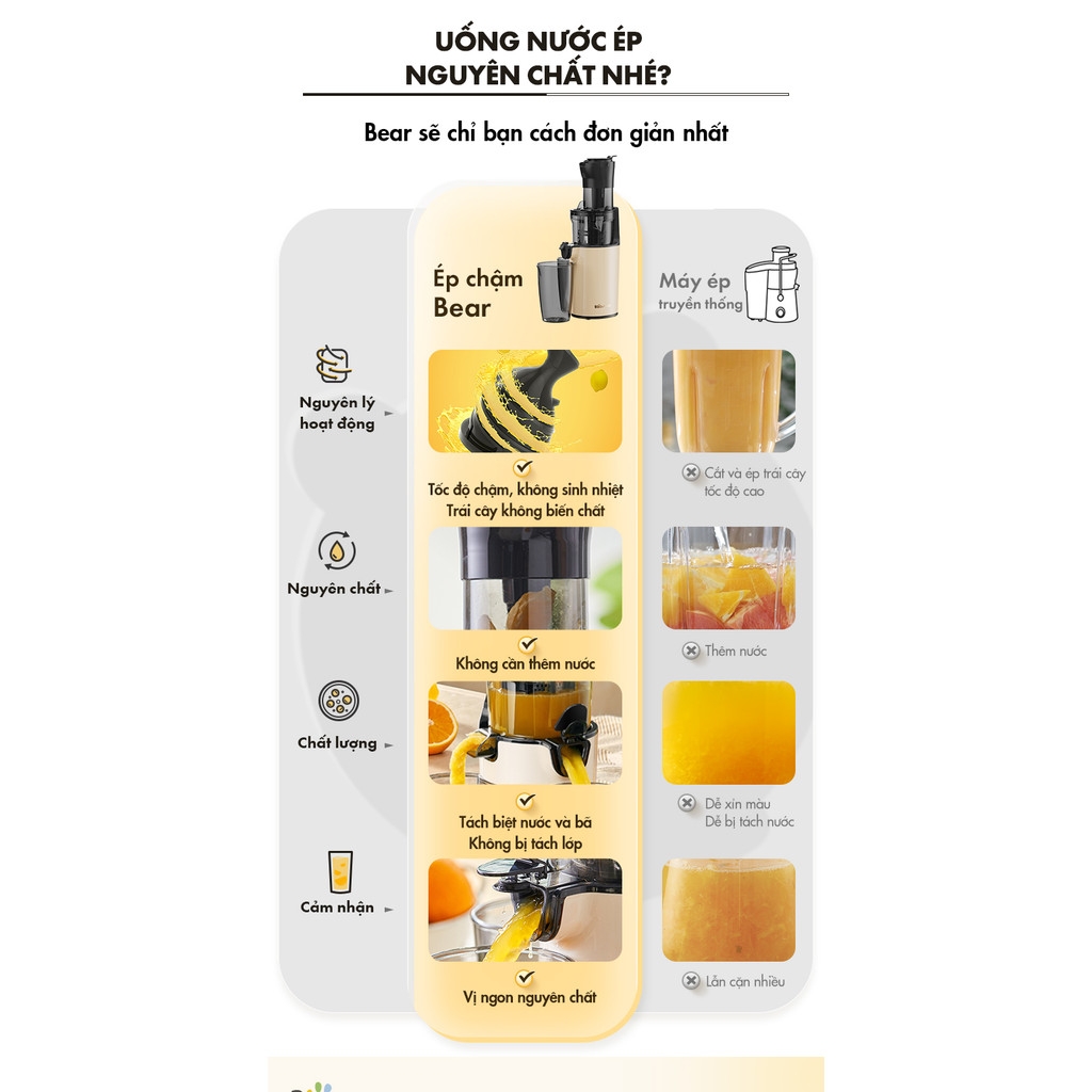 Máy ép chậm 200W Bear YZJ-C02S5 - Hàng Chính Hãng bản nội địa - HAPOS OFFICIAL YZJ-C02S5