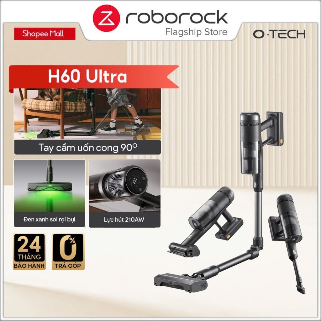 Roborock H60 Ultra nổi bật với lực hút mạnh mẽ lên đến 210AW, kết hợp thiết kế thân máy gập 90 độ linh hoạt, dễ dàng len lỏi làm sạch dưới gầm nội thất. Thiết bị đi kèm bộ đầu hút đa năng, xử lý hiệu quả nhiều loại bề mặt khác nhau. Hệ thống lọc 5 lớp tiên tiến giúp loại bỏ đến 99,95% bụi bẩn, mang lại hiệu suất làm sạch vượt trội cho không gian sống.