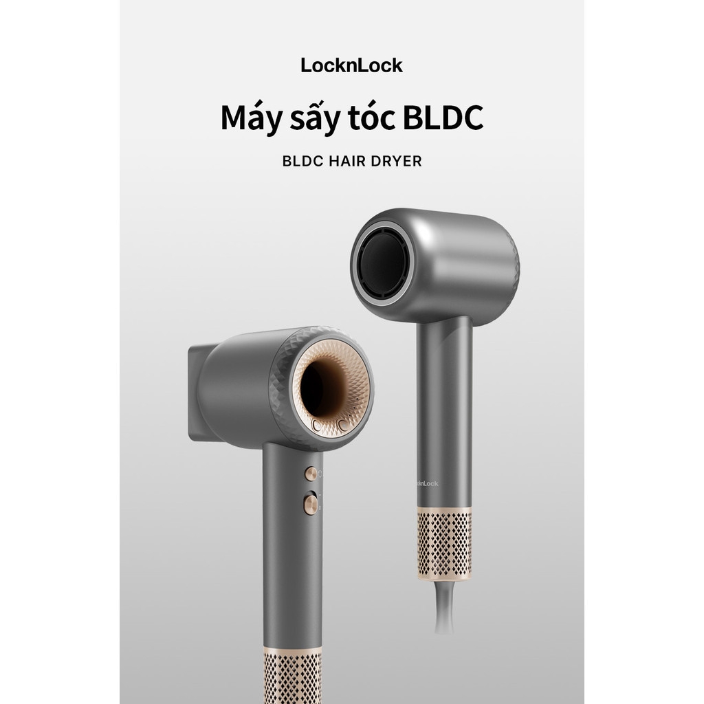 Máy sấy tóc ion âm LocknLock Chính hãng hair dryer đầu sấy từ 360 độ, chức năng tự làm sạch ENA316GRY - Hapos Mall ENA316GRY