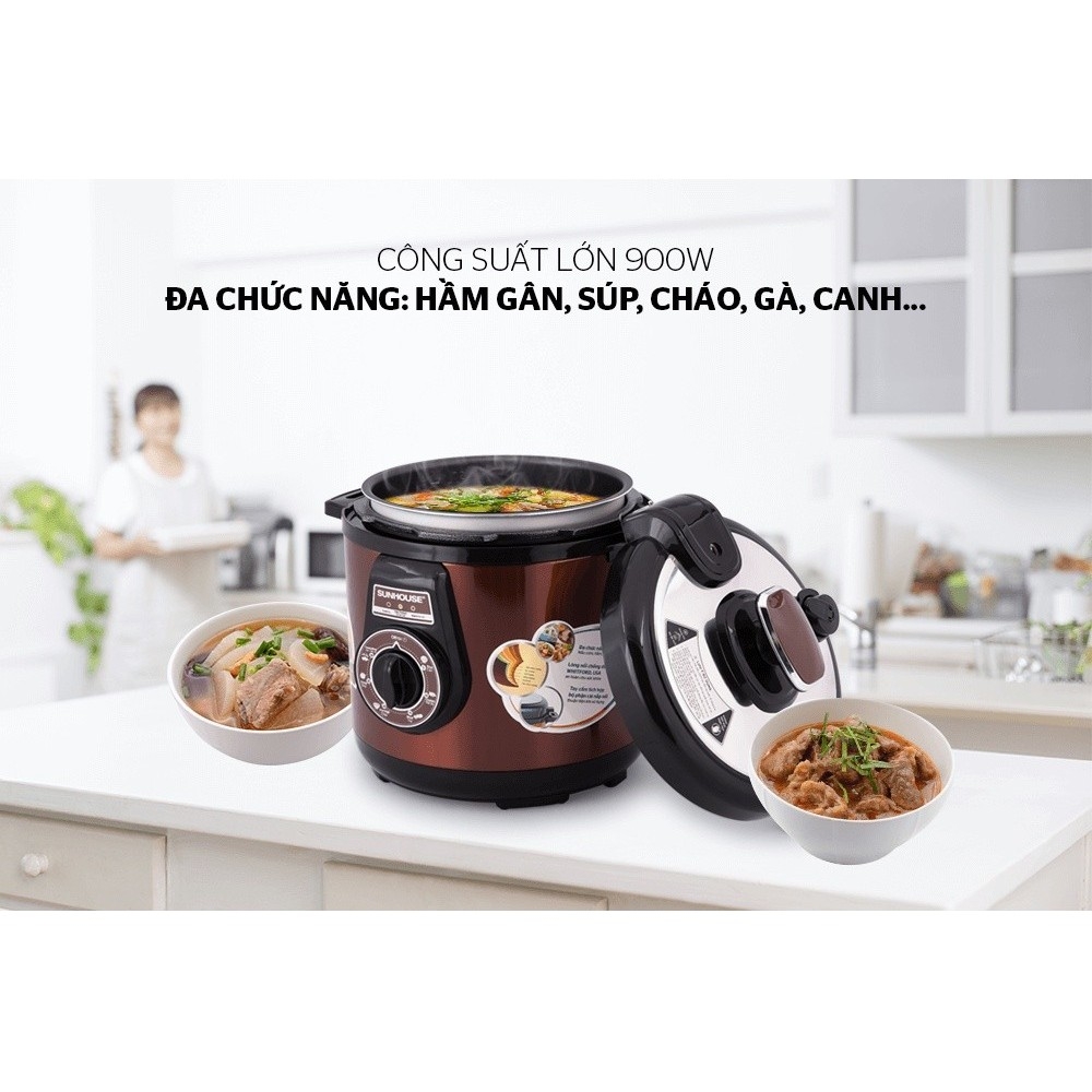 Nồi áp suất điện SUNHOUSE 5L màu cà phê SHD1550Nồi áp suất điện đa năng SUNHOUSE SHD1550 mang lại tính tiện dụng cao, là sự lựa chọn hoàn hảo khi bạn cần chuẩn bị những bữa tiệc dành cho gia đình và bạn bè mà không mất quá nhiều thời gian. BỀN CHẮC – AN TOÀN – TIỆN DỤNGThiết kế sang trọng, đẹp mắtNồi áp suất điện SUNHOUSE 5L màu cà phê SHD1550 làm từ thép sơn tĩnh điện kết hợp cùng nắp nồi làm bằng nhựa cao cấp siêu bền, cách nhiệt, mang lại vẻ đẹp hiện đại cho căn bếp gia đình. Ruột nồi chống dính Whitford – USARuột nồi được phủ lớp chống dính Whitford cao cấp, an toàn tuyệt đối cho sức khỏe người dùng. Nắp nồi dày với gioăng cao su kín khítNắp nồi được thiết kế dày dặn, cấu trúc vòng đệm khít, không làm thất thoát hơi nước, giúp giữ lại chất dinh dưỡng trong thức ăn cũng như bảo đảm an toàn trong quá trình nấu nướng (tránh tràn thực phẩm).Bảng điều khiển rõ ràng, dễ hiểu, tùy chỉnh tiện lợi với núm vặnNồi áp suất điện SHD1550 được thiết kế bảng điều khiển tiếng Việt dễ hiểu, núm vặn dễ sử dụng.ĐA CHỨC NĂNG NẤU NƯỚNG – TIẾT KIỆM THỜI GIAN & CÔNG SỨCĐa chức năngNồi áp suất đa năng SUNHOUSE SHD1550 với công suất lớn 900W, cùng nhiều chế độ nấu khác nhau, giúp bạn có thể nấu được nhiều món như hầm gân, súp, cháo, gà, canh...Dung tích 5L có thể phục vụ nhu cầu của gia đình 3 – 5 thành viên.Tiết kiệm thời gian và năng lượngNồi áp suất SHD1550 có thể tiết kiệm tối đa thời gian và năng lượng, giữ nhiệt độ ổn định với hiệu quả giữ ấm hơn 80% và tiết kiệm tới 30% điện năng.An toàn cho người sử dụngNồi áp suất điện đa năng SUNHOUSE SHD1550 được trang bị những tính năng an toàn: (đọc kỹ HDSD). Dễ dàng vệ sinhHệ thống hoạt động của sản phẩm không làm thoát hơi nước và mùi thực phẩm ra ngoài, giữ cho căn bếp nhà bạn luôn sạch sẽ. Các bộ phận của nồi đều không bám bẩn, dễ dàng vệ sinh sau khi sử dụng.THÔNG SỐ KỸ THUẬTDung tích nồi: 5 lítChế độ: Đa chức năng nấu nướng: hầm gân, súp, cháo, gà, canh, …Màu sắc: Cà phêLoại nồi: Nồi nắp rờiChất liệu vỏ nồi: Thép phủ sơn tĩnh điệnChất liệu lòng nồi: Hợp kim nhôm chống dính WhitfordCông suất: 900WĐiện áp: 220/50HzHẹn giờ: KhôngMàn hình: KhôngBảng điều khiển: Núm xoayDây điện: Dây rờiPhụ kiện: Dây nguồn, Cốc đo, Muỗng, Sách HDSDĐặc điểm khác: - An toàn tuyệt đối trong quá trình sử dụngBảng điều khiển bằng tiếng Việt, dễ dàng sử dụngThương hiệu: SUNHOUSE Xuất xứ: Trung QuốcTrọng lượng: 5.3 kgBảo hành: 12 thángKích thước đóng hộp: 325 x 325 x 345 mm#noiapsuat #noiapsuatdien #noiapsuatdiendanang #noiapsuatdientu #sunhouse #noiapsuatdanang #noiapsuatnauchao #noiapsuat5l #noiapsuatnaucom #shd1550------------HAPOS HEL - ELMICH CHÍNH HÃNG------------