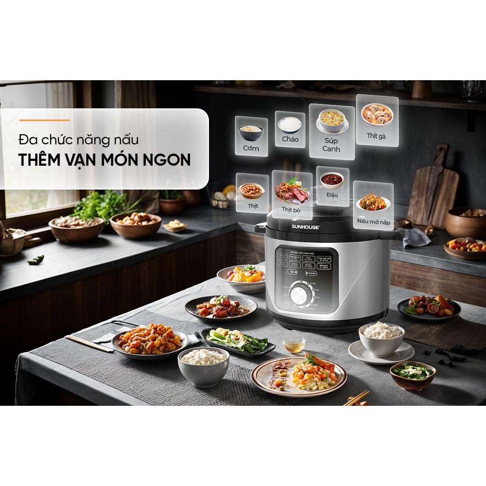 Nồi áp suất điện đa năng 5L Sunhouse SHD1551 900W, 5 cấp độ chống bỏng, Lòng nồi 5 lớp phủ chống dính PTFE - HAPOS HOF