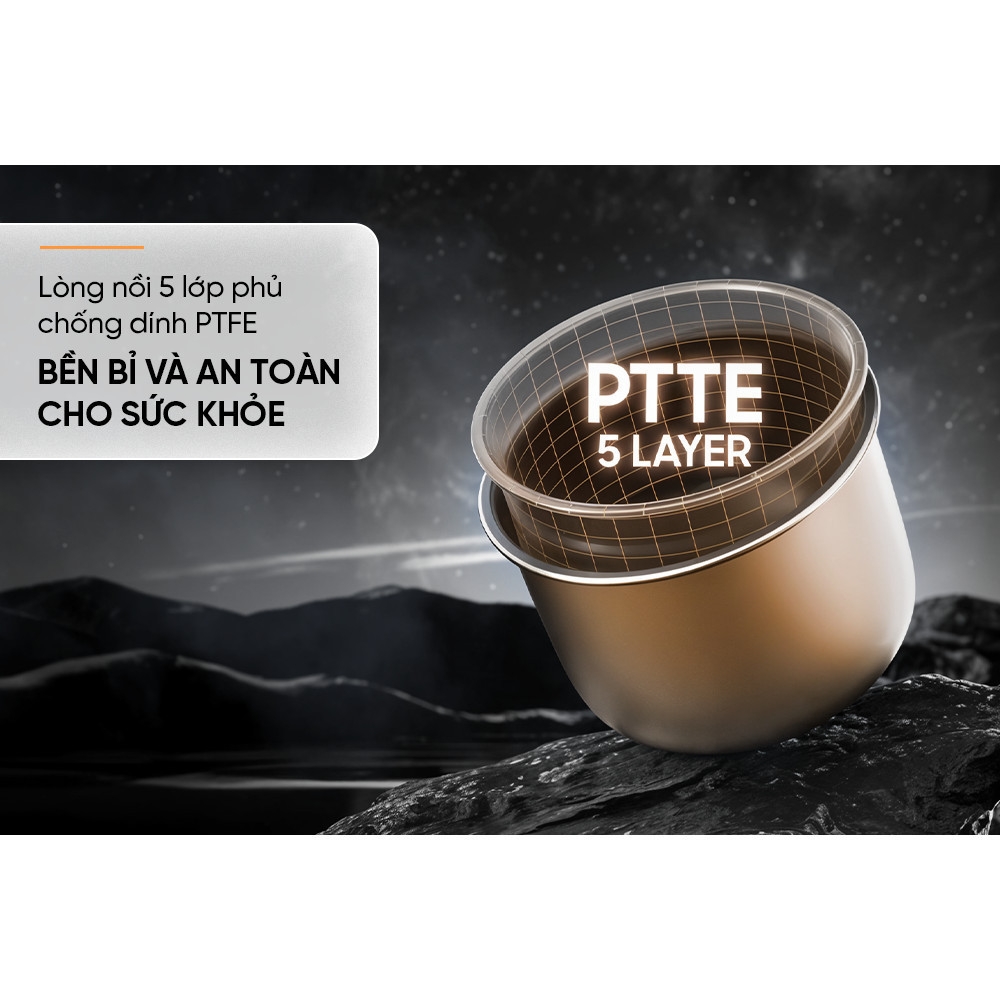 Lòng nồi 5 lớp phủ chống dính PTFE bền bỉ, an toàn cho sức khỏe