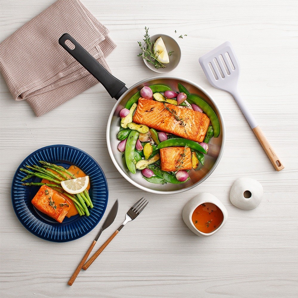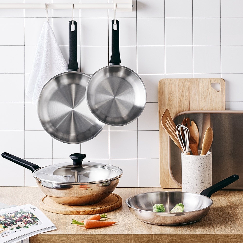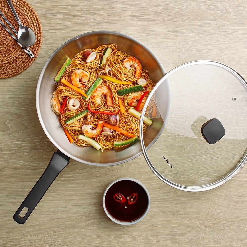 Nồi, chảo Inox 304 đáy từ LocknLock đa lớp Daily STS PPW, kèm nắp kính, tay cầm chịu nhiệt CSC2423IH - HAPOS LOF CSF2623IH-Chảo 26cm