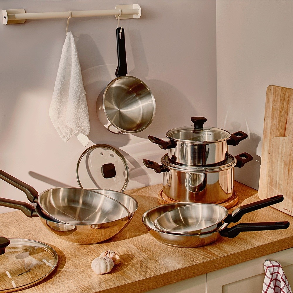 Nồi, chảo Inox 304 đáy từ LocknLock đa lớp Daily STS PPW, kèm nắp kính trong suốt, tay cầm chịu nhiệt - HAPOS LOF