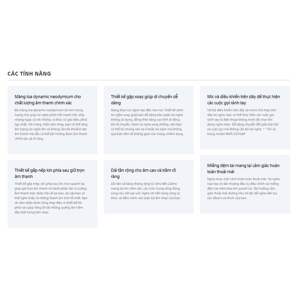 Đặc tính sản phẩm Tai nghe choàng tai Sony ZX110AP