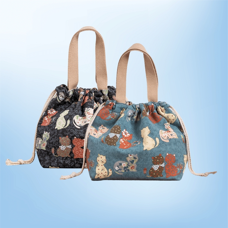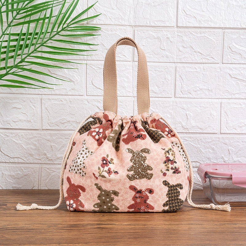 Túi đựng vải canvas cao cấp cho hộp cơm trưa văn phòng LocknLock dây rút dễ thương phong cách Nhật Bản HPCV07 - HAPOS Thỏ Xanh/ Hồng